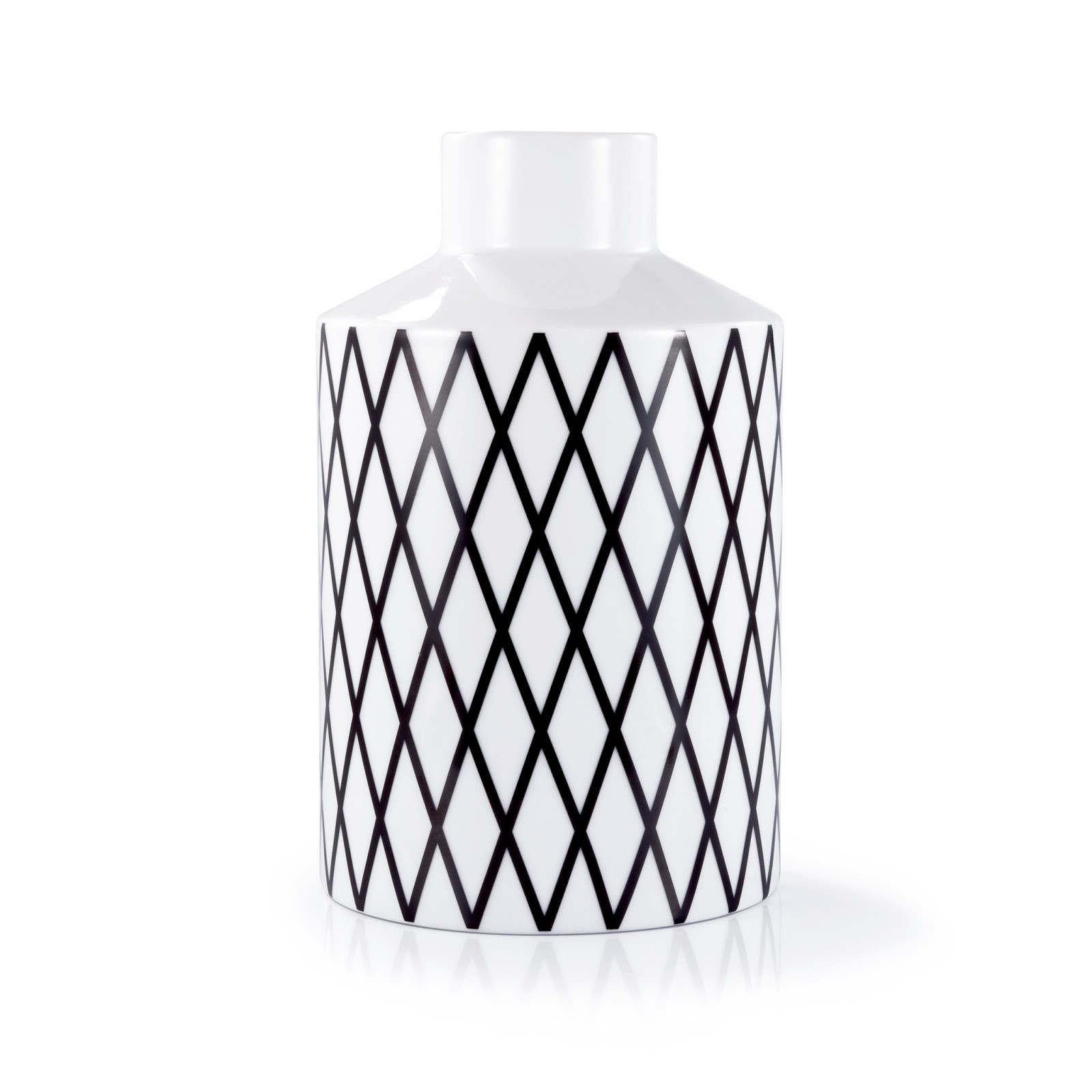 是花瓶也可以是裝點逸品 本產品選用高級白瓷搭配時尚簡約的圖騰點綴,於花藝設計中陪襯而不搶戲,在平時擺飾時低調卻不單調。