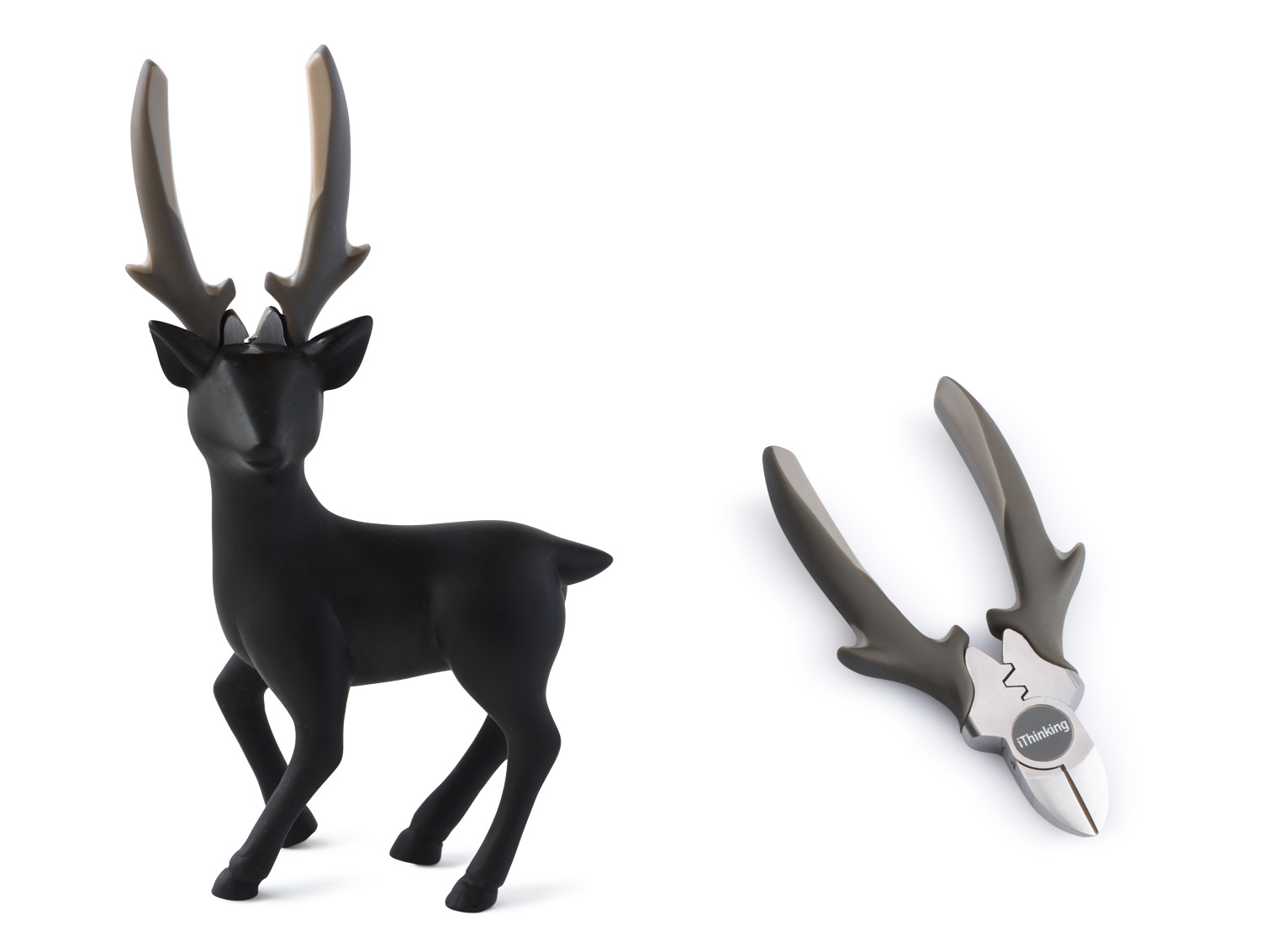 剛性結構與柔性材質相互搭配,增加工具給人的親和感,鉗子與鹿身結合呈現整體設計的優雅特質,不僅實用性十足,更為提高家居品質的精美擺飾。