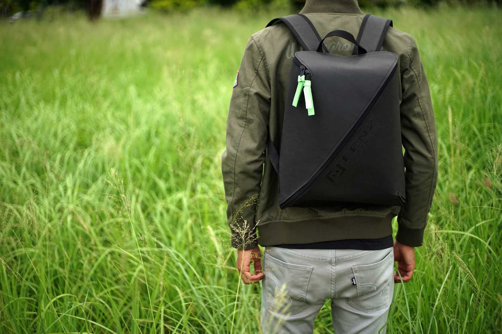 Material : green paper fiber + environmentally friendly PET + zipper + nylon strap + wool felt inside (recyclable)
