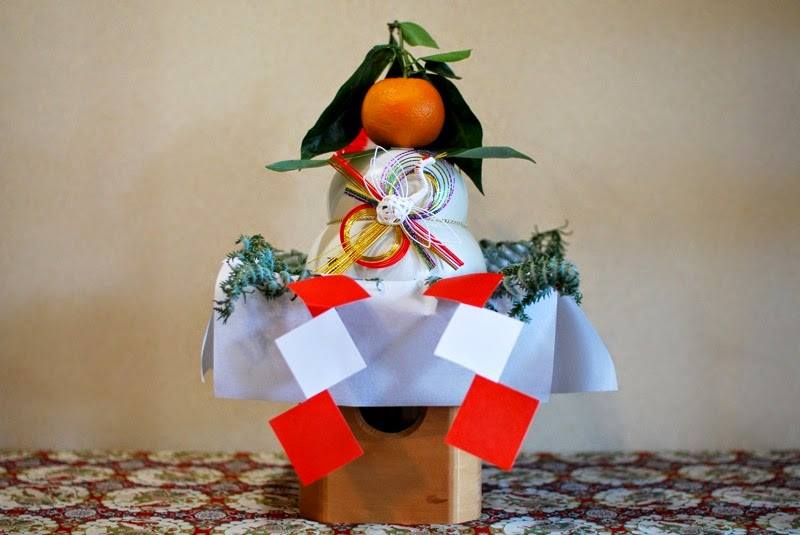 鏡餅的上方往往會放上一顆柳橙。因為橙在日語的諧音有「幾個世代」之意,故用以比喻健康永恆的家庭,世世代代繁榮昌盛。