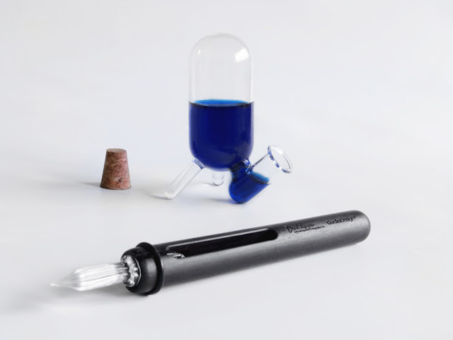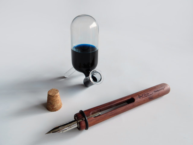 The dip pen, Symbiosis and harmonization, is provided with the unique compatibility of glass and metal nibs so that users only need one shaft with various nibs. This is a big breakthrough. The second part is the ink attachment, Octopus feeder, which is used to upgrade ink bottles to solve the problem that remaining ink is too low. By the principle of atmospheric pressure, the feeder can limit the ink supply precisely. No longer to worry about how much ink is remaining in a bottle. The feeder works with about 30ml (diameter 14 to 23.6mm) ink bottles.