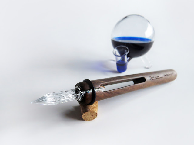 The dip pen, Symbiosis and harmonization, is provided with the unique compatibility of glass and metal nibs so that users only need one shaft with various nibs. This is a big breakthrough. The second part is the ink attachment, Octopus feeder, which is used to upgrade ink bottles to solve the problem that remaining ink is too low. By the principle of atmospheric pressure, the feeder can limit the ink supply precisely. No longer to worry about how much ink is remaining in a bottle. The feeder works with about 30ml (diameter 14 to 23.6mm) ink bottles.